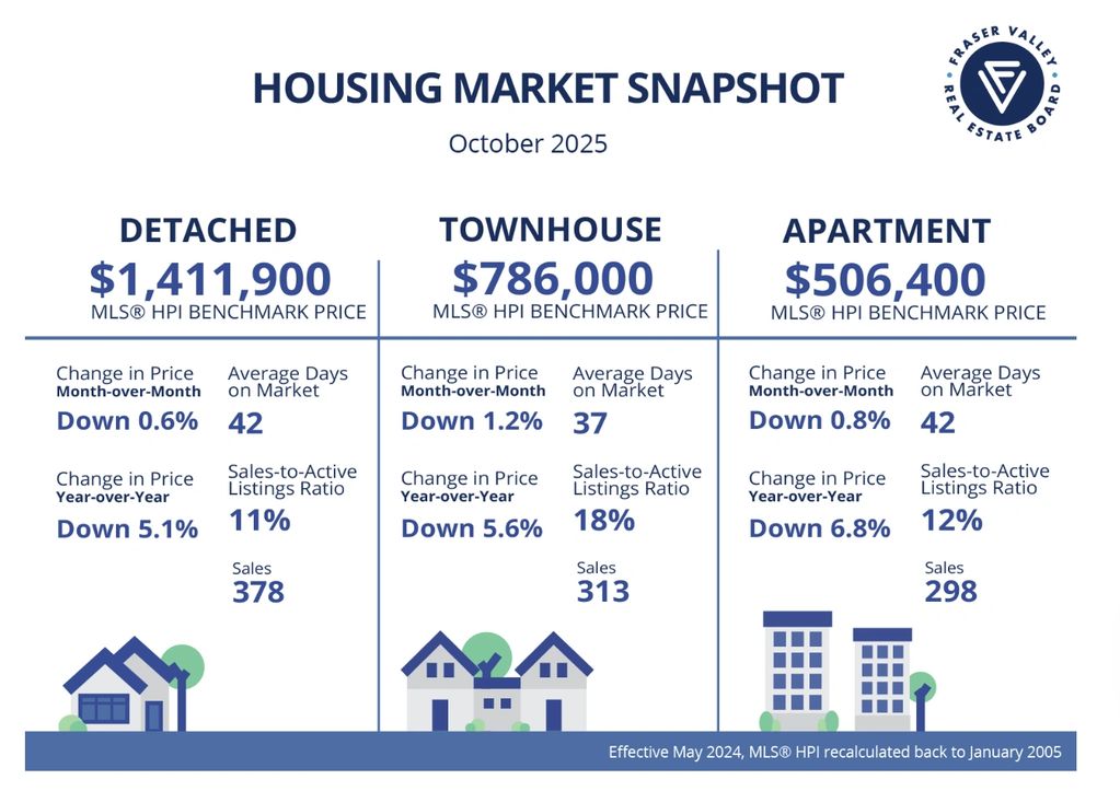 "The Fraser Valley remains firmly in a buyer’s market, with an overall sales-to-active listings ratio of 11 percent in October, up from nine percent in September. The modest increase reflects a rise in sales alongside